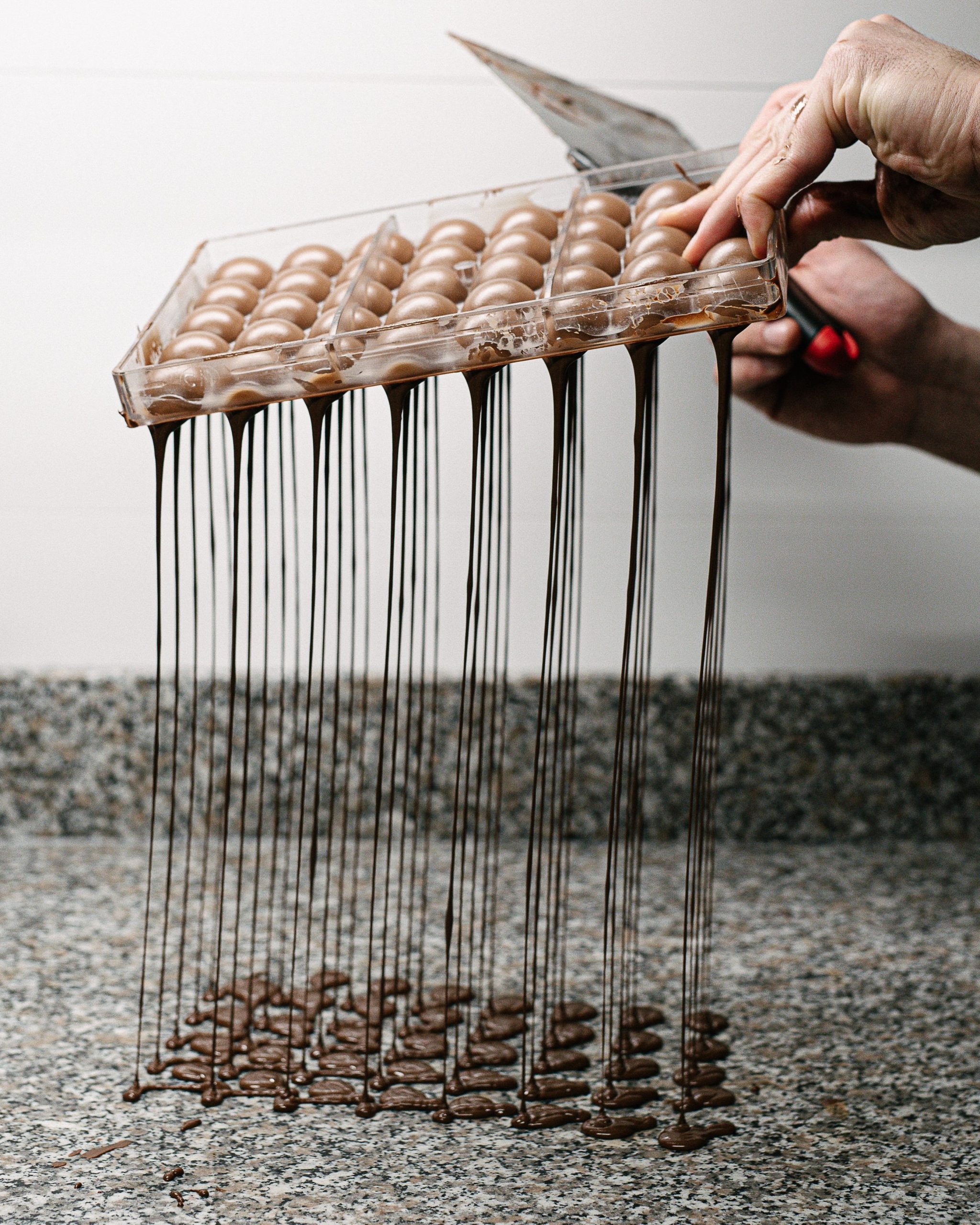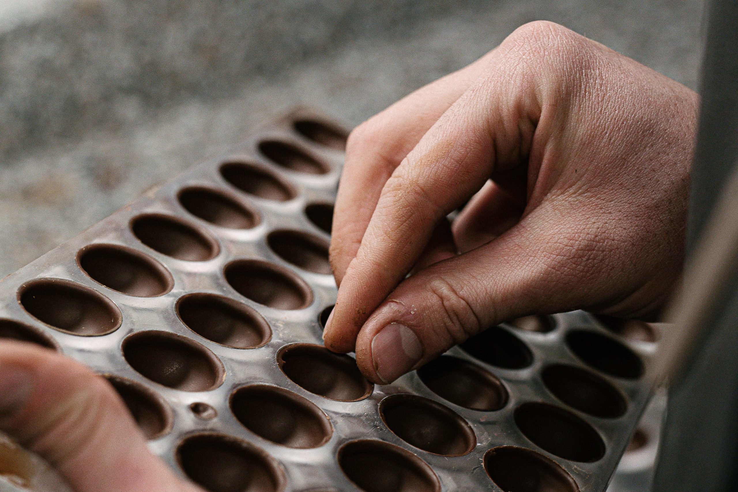 Čokolada ne pozna bližnjic. Vsako pralino, vsako ploščico in vsak čokoladni detajl oblikujemo ročno, z enako natančnostjo, kot bi jih ustvarjali za umetniško galerijo. Vizualno oblikovanje, oblivanje, polnjenje in dekoriranje zagotavljajo edinstvenost vsakega kosa – ničesar ne prepuščamo naključju. In za vse to je potreben čas, da čokolada pravilno kristalizira.